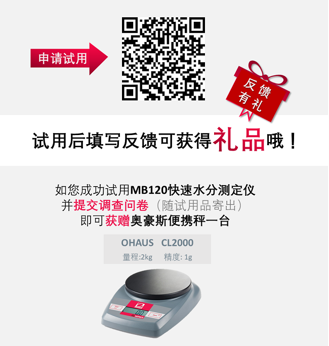 1. 活動說明:活動期間,您只需提交試用申請、無需承擔任何費用,即有機會獲得MB120快速水分測定儀15天免費試用體驗。