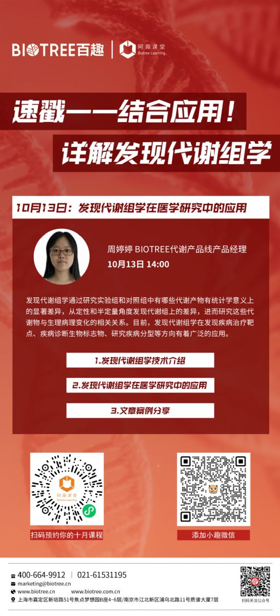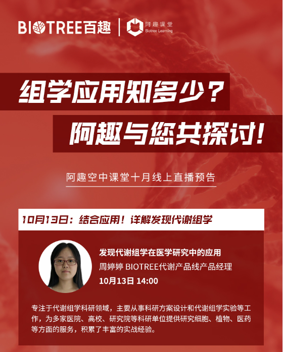 感嘆時間的流逝,但可千萬不能停下前進的腳步啊!十月阿趣空中課堂,組學應用專場,與你一起探討代謝組學在多個領域的研究應用。