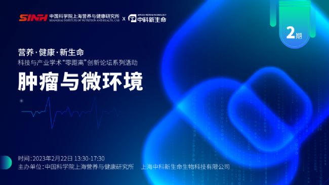 2023年2月22日,中國科學院上海營養與健康研究所聯合上海中科新生命生物科技有限公司舉辦的以“ 營養 · 健康 · 新生命 ”為主題的科技與產業學術“零距離”系列創新論壇第二期【腫瘤與微環境】論壇圓滿結束。本次會議圍繞腫瘤與微環境學術研究進展進行深入的交流與探討,吸引了線上線下兩千余人參會。