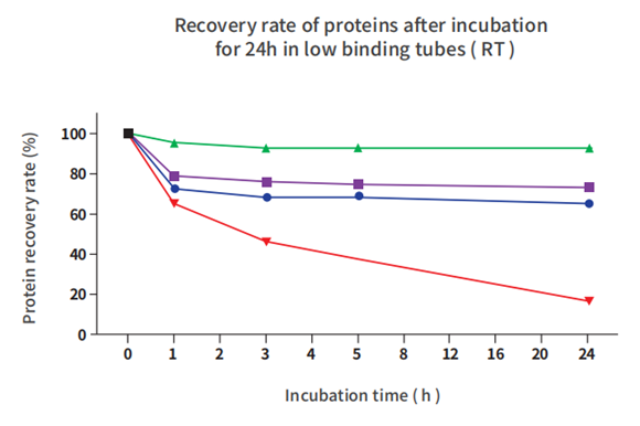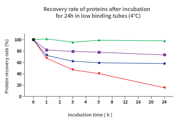 潔特生物L(fēng)o-Protein™ 低蛋白吸附微量離心管對(duì)蛋白樣品具有更高的回收率,能將蛋白樣品損失最小化。