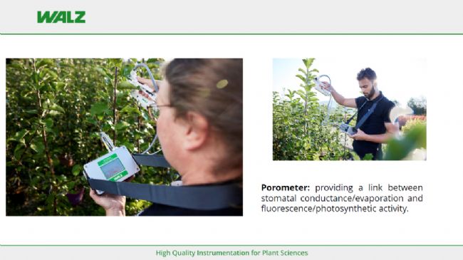 Gert Schansker博士還介紹了德國WALZ公司推出的新產品,包括Porometer氣孔計、Leaf State Analyzer LSA-2050、MICRO-PAM、MULTI-COLOR-PAM-II、HEXAGON-IMAGING-PAM等。Porometer氣孔計是超便攜調制葉綠素熒光儀MINI-PAM-II的最新配套附件,通過它可以實現葉片氣孔導度和葉綠素熒光的同步測量,可以用于快速評估PSII光能轉換效率和氣孔開放程度;Leaf State Analyzer LSA-2050,基于葉片表皮屏蔽UV-A/B、葉綠素含量差異,Fv/Fm差異等參數進行植物突變體篩選的應用;緊湊型多通道長期監測熒光儀MICRO-PAM,可以不間斷收集植物葉綠素熒光數據,特別適用于研究植物對自然環境變化和受控條件下的響應研究;多激發波長葉綠素熒光儀MULTI-COLOR-PAM-II,可以實現亞μs分辨率超快測量探測放氧復合體(OEC)狀態;HEXAGON-IMAGING-PAM是大型蜂巢矩陣葉綠素熒光成像系統,憑借高精度的脈沖振幅調制(PAM)技術,可以對20×24cm的區域進行成像,在光合作用研究、植物病理學、植物脅迫生理學、遺傳育種、突變株篩選、微藻毒理學等領域應用廣泛。