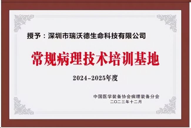 近日,瑞沃德正式被授予“2024-2025年度常規病理技術培訓基地”,這意味著從2024年開始,瑞沃德將積極開展病理技術人才培養及病理技術提升工作,進一步加強學術交流、促進病理學科高質量發展、強化人才培養、整合優勢資源,推進中國病理學科高水平建設。