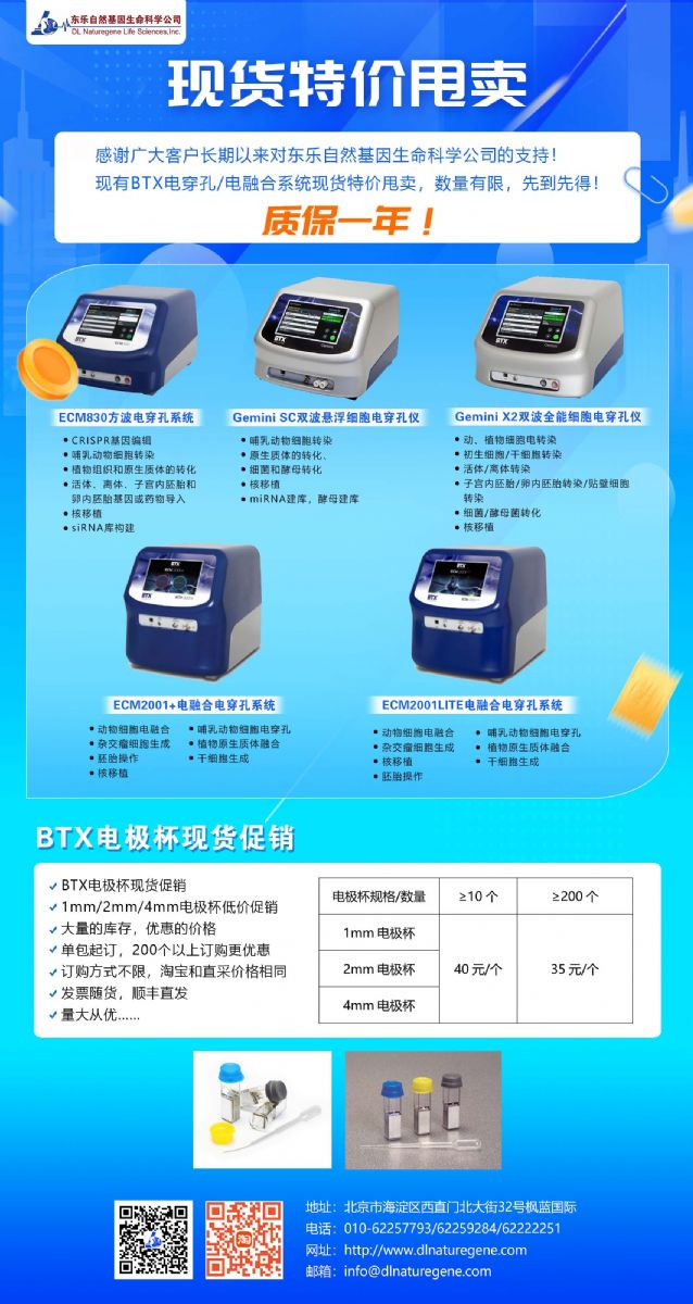 為了感謝廣大客戶長期以來對東樂自然基因生命科學公司的支持,我公司近期推出部分產品現貨特價促銷活動,歡迎新老客戶垂詢。