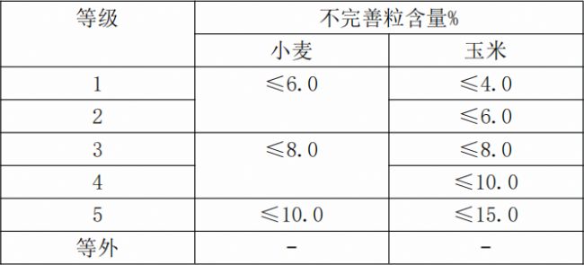 不完善粒是受到損傷但尚有使用價值的糧食顆粒,不同糧食種類其不完善粒的定義稍有區別,如小麥不完善粒包括蟲蝕粒、病斑粒(黑胚粒、赤霉病粒)、熱損傷粒、破損粒、生芽粒和生霉粒;稻谷不完善粒包括未熟粒、蟲蝕粒、病斑粒、生芽粒和生霉粒;玉米不完善粒包括蟲蝕粒、病斑粒、破損粒、生芽粒、生霉粒和熱損傷粒。