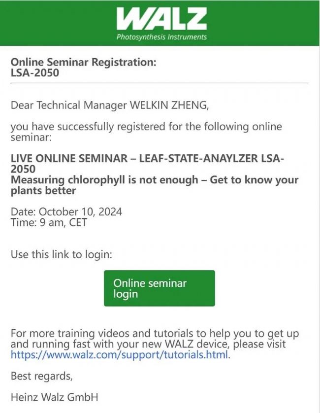 2024年10月8日和10日,德國WALZ公司將面向全球,分時段地舉辦兩次線上研討會,向大家隆重介紹植物多酚葉綠素熒光儀LSA-2050的功能及應用。