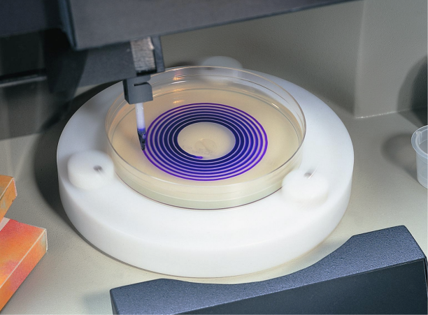 1、抑菌產(chǎn)物開發(fā):DW-L2000A依據(jù)螺旋接種快速精準(zhǔn)的接種能力,使橫跨三種濃度梯度的菌液或抑菌試劑在一個(gè)平皿上接種,使實(shí)驗(yàn)員擺脫菌種濃度稀釋與多濃度平板制備,抑菌效果一目了然,輔助加速新型抑菌產(chǎn)物的研發(fā)。