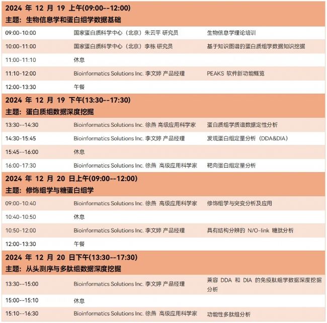 在蛋白質(zhì)組學(xué)三十年的發(fā)展中,伴隨著質(zhì)譜技術(shù)和生物信息分析方法的飛速發(fā)展。面對日益增長的質(zhì)譜數(shù)據(jù)規(guī)模,如何針對不同的分析需求選擇合適的質(zhì)譜數(shù)據(jù)分析方法及生物信息挖掘工具尤為重要。為了幫助生命科學(xué)研究人員更加高效、合理地利用已開發(fā)的蛋白質(zhì)組技術(shù)與生物信息學(xué)資源深度挖掘已有的蛋白質(zhì)組學(xué)質(zhì)譜數(shù)據(jù),中國生物化學(xué)與分子生物學(xué)會蛋白質(zhì)組學(xué)專業(yè)委員會、國家蛋白質(zhì)科學(xué)中心·北京(鳳凰中心)與Bioinformatics Solutions Inc.將于2024年12月19日-20日聯(lián)合舉辦“蛋白質(zhì)組學(xué)數(shù)據(jù)分析培訓(xùn)會”。本次會議為期兩天,將以蛋白質(zhì)組學(xué)經(jīng)典和熱點應(yīng)用為主題,先從蛋白質(zhì)組學(xué)理論知識概念描述,到PEAKS®軟件的標(biāo)準(zhǔn)化分析工作流,詳細(xì)講解如何進行蛋白質(zhì)譜數(shù)據(jù)深度挖掘分析,包括蛋白質(zhì)組學(xué)/多肽組定性、定量分析;翻譯后修飾和突變位點鑒定以及N/O-linked糖譜深度剖析的糖基化蛋白組分析等,旨在為正在進行或者未來有志投身蛋白質(zhì)組學(xué)、 抗體蛋白生物藥 、 醫(yī)學(xué)及臨床蛋白組、生物信息學(xué)等相關(guān)領(lǐng)域科研人員提供一個交流學(xué)習(xí)的平臺。