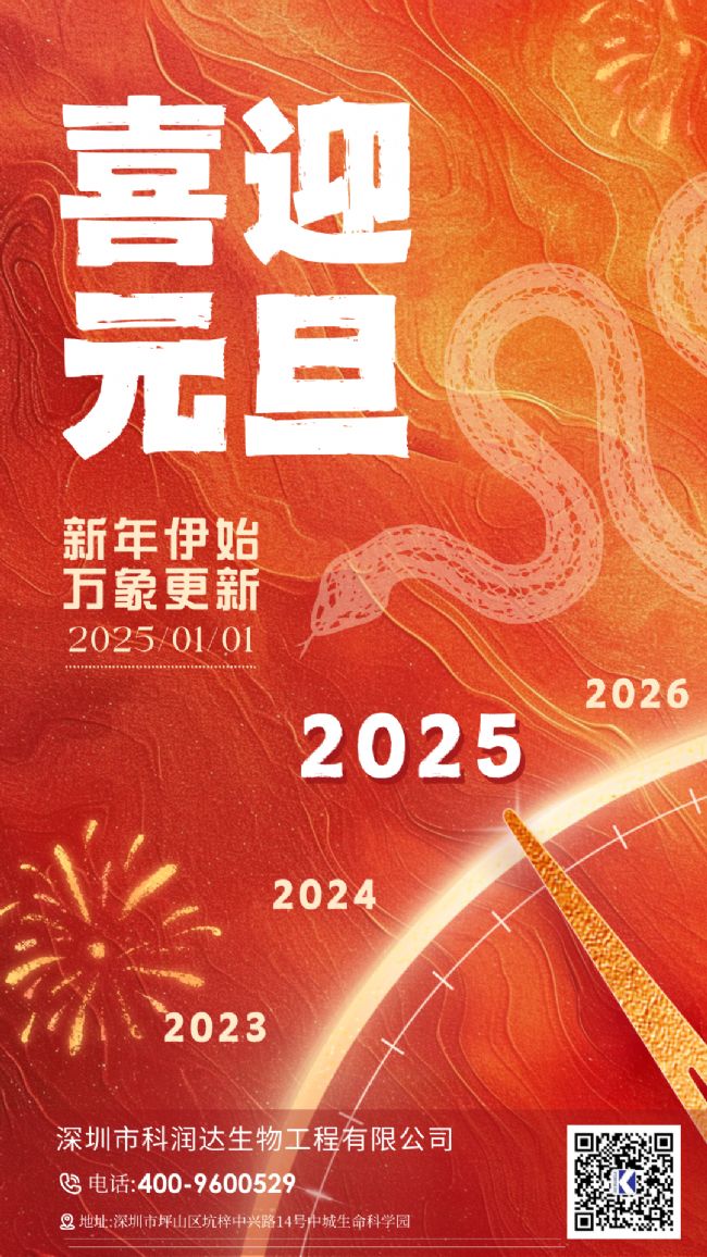 新年伊始,萬象更新!在這辭舊迎新之際,深圳市科潤達生物工程有限公司向大家致以最誠摯的新年祝福!祝愿大家在新的一年里身體健康,闔家幸福,萬事如意!