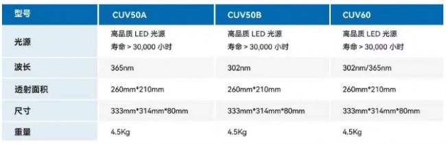 針對這些問題, Clinx勤翔近日推出新一代CUV系列LED紫外透射儀,采用高品質長壽命LED燈珠取代傳統UV燈管, 一次性解決了UV燈管紫外透射儀的痛點, 為用戶帶來更安全、更均勻、更出色的核酸膠樣品觀測體驗。