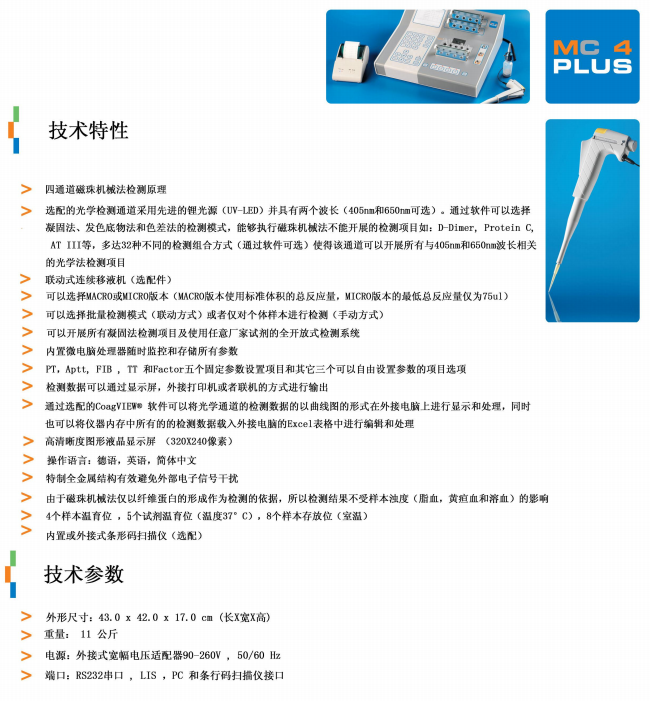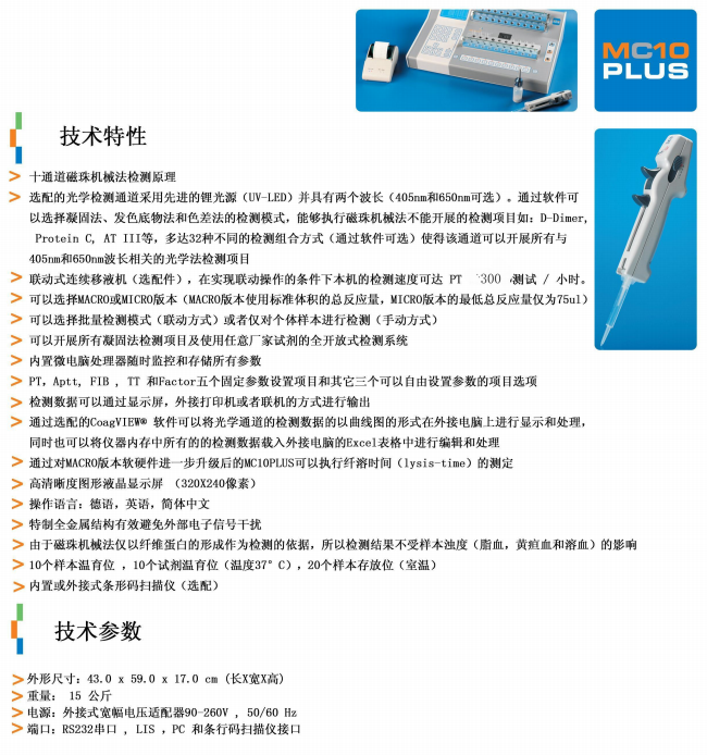 德國MC(美靈)半自動血凝儀基本技術參數