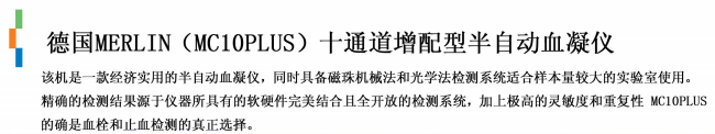 德國MC(美靈)半自動血凝儀為中檢驗證指南中指定使用設備并且被廣泛應用于凝固活力,肝素含量等檢驗項目中。