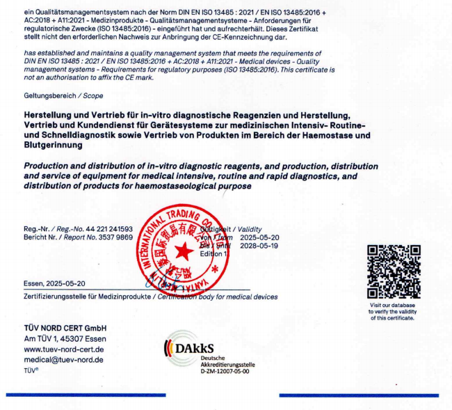 成立于1992 年的德國MENAL 實驗室主要致力于凝血項目的檢測和研究,其客戶群體包括西門子醫療診斷, 羅氏診斷, 武田制藥, 雅培診斷等等世界知名企業,與我們也多年的合作經歷。