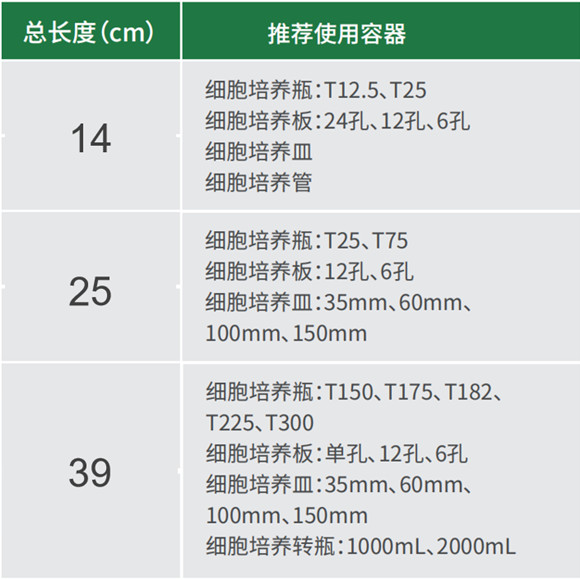 ◆ 細胞刮刀規格多樣,可滿足小型孔板至大容量培養瓶各種不同容器的細胞收集需求。