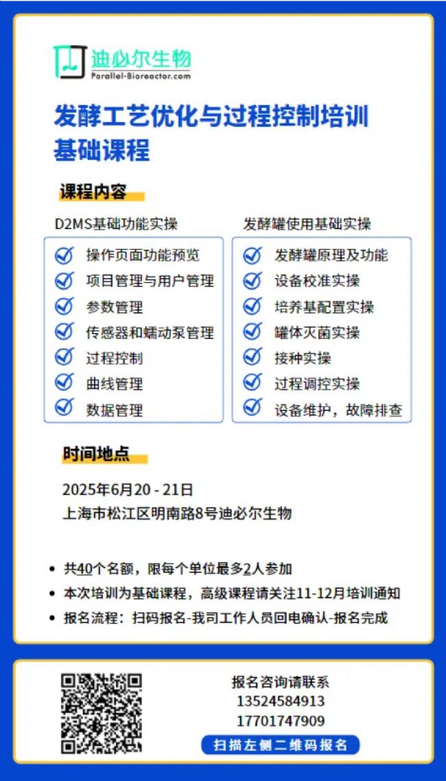 為助力生物制造領域人員技術提升,迪必爾組織開展“數據驅動丨發酵工藝優化與過程控制”系列培訓。該課程已于2024年開展兩期,收到廣大學員的好評和反饋。