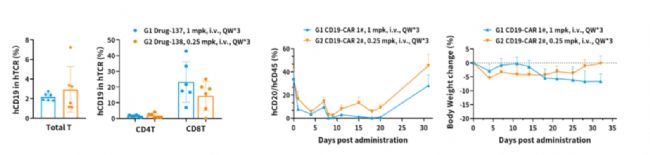 此外NVG-hIL15也滿足γδ T的重建與擴(kuò)增,可在相對較少的γδ T細(xì)胞注射量下完成重建,且T細(xì)胞存活時間更長。