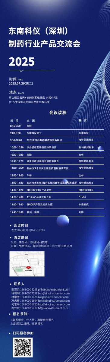 東南科儀(深圳)制藥行業(yè)產(chǎn)品交流會(huì)報(bào)名邀請(qǐng)