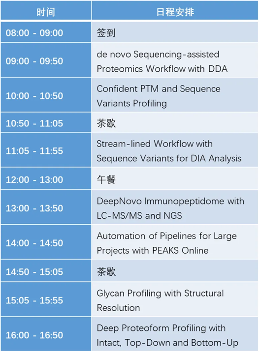 培訓(xùn)班期間每位學(xué)員提供午餐和茶點,以及培訓(xùn)班期間的PEAKS Studio軟件免費試用。