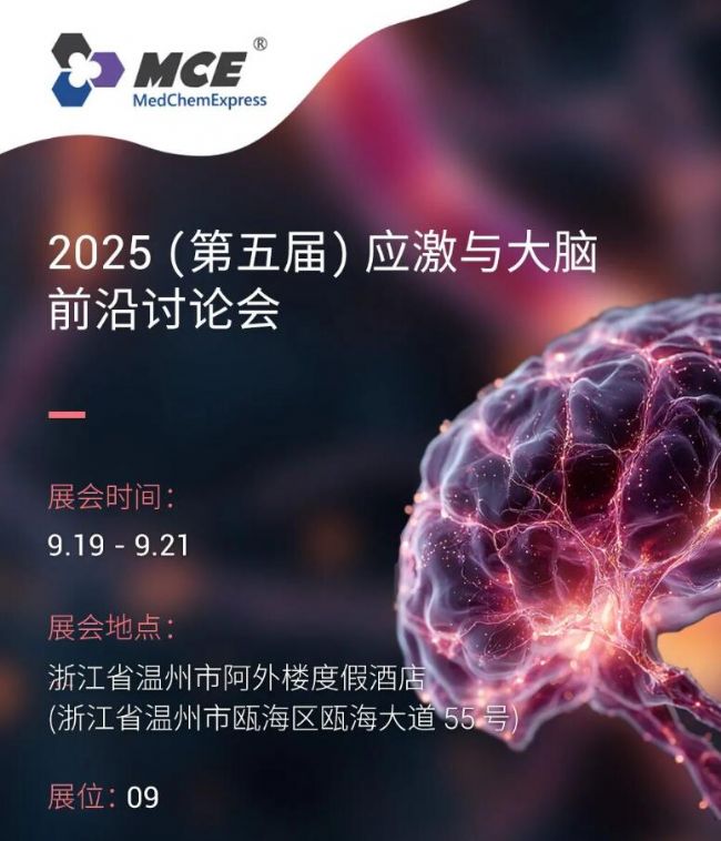 中國神經(jīng)科學(xué)學(xué)會(huì)應(yīng)激神經(jīng)生物學(xué)分會(huì) 2025 年學(xué)術(shù)年會(huì)暨第五屆“應(yīng)激與大腦”前沿研討會(huì)將于 2025 年 9 月 19 日至 21 日在浙江溫州召開。本屆會(huì)議將聚焦“應(yīng)激與大腦”的研究前沿,邀請(qǐng)領(lǐng)域內(nèi)卓有建樹的專家學(xué)者,探討應(yīng)激影響腦功能、腦健康方向的前沿問題和進(jìn)展,增進(jìn)同行之間的交流合作,促進(jìn)學(xué)科發(fā)展、交叉和成果轉(zhuǎn)化。我們誠摯邀請(qǐng)各高校、科研院所及醫(yī)療單位的科研及臨床人員蒞臨此次會(huì)議的 MCE 展臺(tái),共享學(xué)術(shù)盛宴,共同推動(dòng)國內(nèi)應(yīng)激與大腦研究的發(fā)展!
