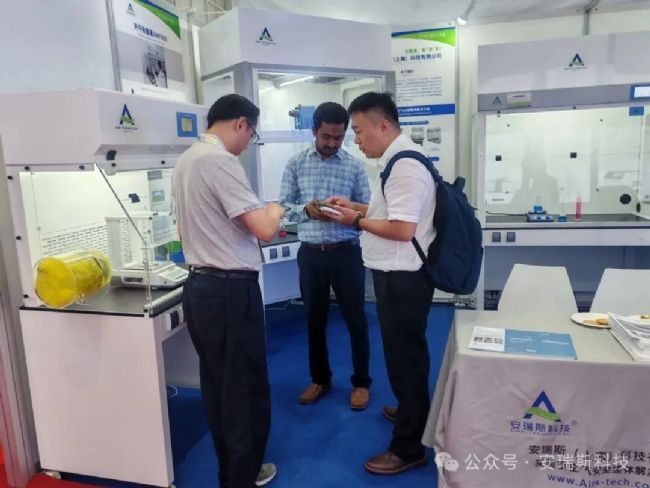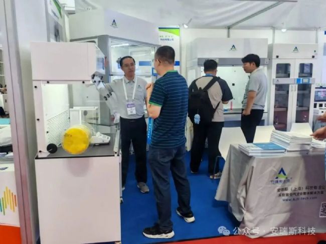 本次展會,安瑞斯同時展示出了王牌產品“天平稱量罩”、“無管道凈氣型通風柜”、“儀器防護柜”和“智能凈氣型化學品儲存柜”,安瑞斯天平稱量罩專用于實驗室中有毒有害物質的稱量,尤其適用于制藥行業對高活性有毒物質的稱量操作,能夠提供有效防護。既能保障安全,又能確保讀數的穩定,符合OEB 5標準及JG/T 385-2012標準。無管道凈氣型通風柜配備5英寸醫用級高清顯示屏,搭載Airs-Touch智能觸摸式操作系統,可以對風機運行、過濾效率、面風速、溫濕度等重要參數進行實時監測,此外,屏幕上還會顯示設備已運行的天數,并帶有倒計時計時器,用于提醒維護周期。儀器防護柜用于處理大型儀器反應時產生的揮發性物質,以保護人員與周邊環境。配備5英寸醫用級專業高清觸摸顯示屏,采用了上下拉門設計,方便實驗人員操作。可APP手機同步聯網,支持定制!安瑞斯智能凈氣型化學品儲存柜,這是一款專用于存儲揮發性化學品的安全柜,配備5英寸醫用專業高清觸摸顯示屏,24小時柜內負壓通風,揮發的化學污染物直接被過濾。支持單/雙卡刷卡權限管理,符合現行化學品管理規范。可選配抽拉式存儲單元,此外還提供避光款、防火防爆款等多種款式,以滿足不同的存儲需求。