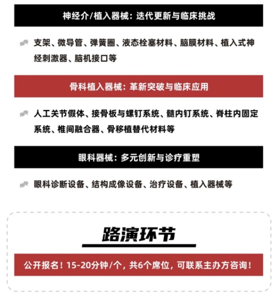 高端醫療器械創新發展與合作大會。本次會議以搭建全產業鏈交流平臺為目標,涉及手術機器人、醫學影像設備高端器械,聚焦心血管、神經、骨科、眼科等熱門應用場景。屆時,企業代表、臨床醫生、科研人員等行業同仁齊聚一堂,共同剖析行業發展趨勢,分享創新技術成果與實踐經驗,推動醫療器械行業邁向高質量發展新階段,為行業在新時代的可持續發展凝聚智慧與力量。