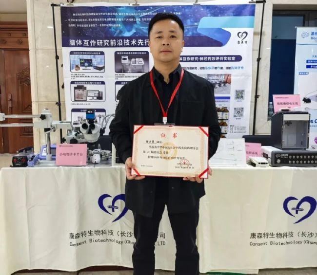 感謝會議主辦方的精心組織和安排,康森特生物科技應邀參加,展出了微透析取樣系統、活體化學物質實時分析系統、小動物睡眠癲癇電生理系統、氧含量檢測儀、數顯式腦立體定位儀、小動物麻醉機、動物數碼顯微鏡等動物科研產品。