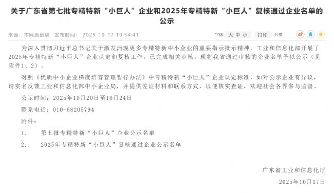 10月17日,廣東省工業和信息化廳權威發布新一批國家級專精特新“小巨人”企業名單,廣州博鷺騰生物科技有限公司憑借其在生命科學領域的深厚積累與硬核實力,成功躋身國家級“小巨人”企業行列。