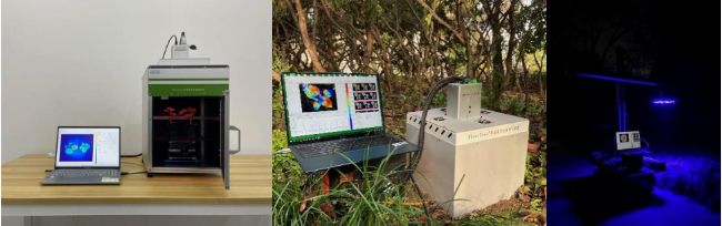 - PhenoPlot®植物表型成像分析技術:融合高光譜成像、SIF 成像及LEDIF主動熒光測量技術,可獲取SIF、植被冠層光合生理指數、葉綠素熒光及光譜等數據,既有輕便式成像平臺,便于長途攜帶;也有移動式平臺,可靈活切換實驗樣地;還有懸浮軌道式平臺,可對實驗樣地進行長期自動掃描測量。