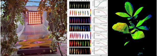 - 智能移動式表型平臺:可在生產環境現場(如溫室、植物工廠等)進行表型分析,把表型分析實驗室前置種植現場,原位(in-situ)監測植物健康、生理狀態、生產效率(如光合效率等),及作物對光、脅迫等環境因子的響應。具備頂端和側面的RGB、葉綠素熒光熱紅外等表型成像,還可選配3D葉綠素熒光成像,自動形成三維葉綠素熒光成像,同時進行株高、冠幅等形態測量。