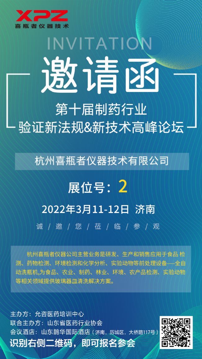 杭州喜瓶者將參展第十屆制藥行業驗證新法規&新技術高峰論壇,誠邀您蒞臨!