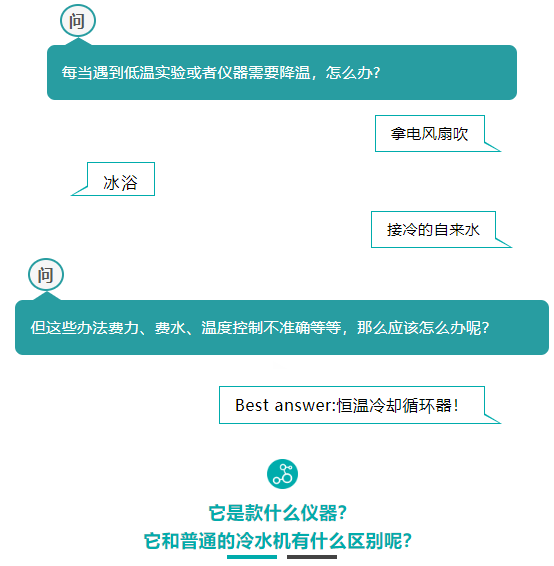 普通冷水機僅采用壓縮機制冷,沒有加熱措施,控溫精度差,往往采用先降溫到一個低于設定溫度的溫度點,壓縮機停止工作后,在環境溫度或者負載的影響下溫度上升到一定溫度后壓縮機再開啟制冷,如此循環?梢娖淇販鼐韧±2°C左右。對于一些需要較高精度(≤±0.5°C)控溫的應用時,普通冷水機就無法勝任。我們最新于2022-03-04推出的這一款恒溫冷卻循環器在沒有加熱管情況下實現控溫準確,采用全新技術實現低功耗高精度控溫、實時動態調整制冷量。并且,該設備終身免除塵清灰,具有高泵壓、整體體積小,適用于多種場合,可匹配相關分析測試儀器。