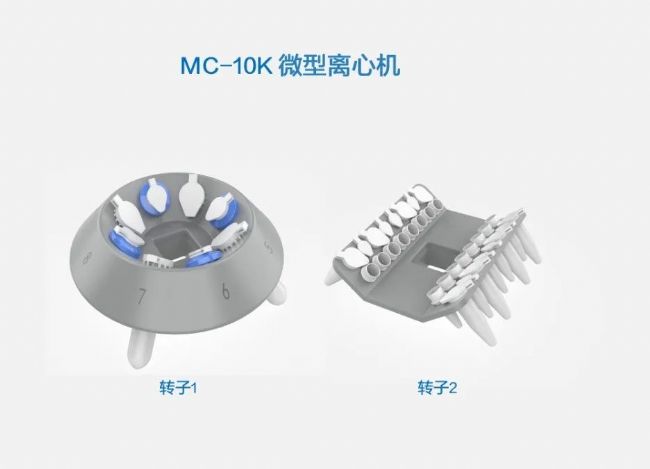 離心機出廠配備2個不同轉子,適用0.2ml、0.5ml、1.5ml 單管及八聯(lián)管,滿足多種搭配的使用場景,適用范圍更廣。