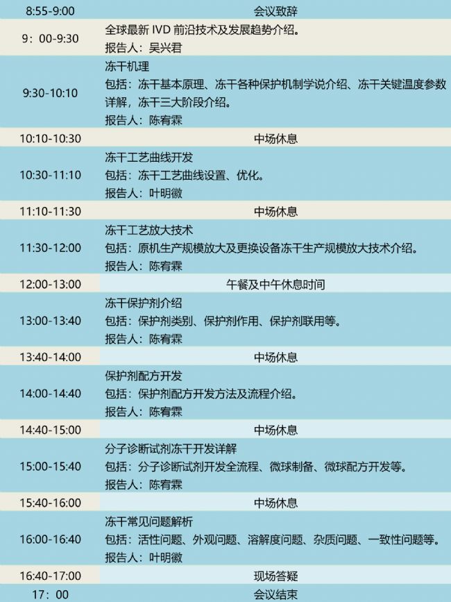 研討會主要內容:發布凍干最新應用開發技術。涵蓋各領域凍干技術開發難點及對應解決措施。