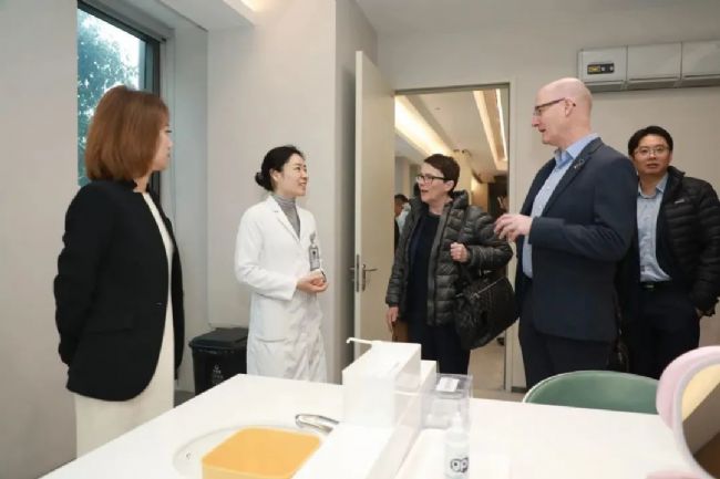 Dr. Annette Rinck and her party visited the examination area and the International Medical Services Department of AIER Eye Hospital Shanghai, and visited our hospital's medical equipment and services, and the use of microscopes in our hospital, and communicated with the experts and staff.