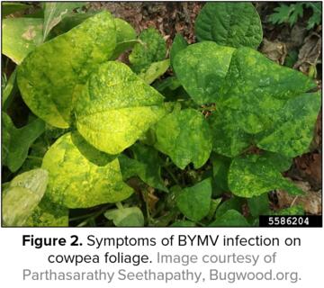 菜豆黃花葉病毒(BYMV)屬于豆黃花葉病毒屬,可顯著降低幾種主要經濟作物的產量,包括糧食、飼草、觀賞作物和種子作物。此外,普通雜草植物可以作為蚜蟲的越冬場所和繁殖場所。常見的寄主包括苜蓿、普通豆、豇豆、蠶豆、劍蘭雜交種、羽扇豆、花生、大豆、甜豌豆和幾種車軸草屬(苜蓿類)。1931年在威斯康辛州首次觀察到這種病毒感染了豆類。從那時起,BYMV已經傳播到所有種植其廣泛豆科植物的地區,并在世界范圍內分布。