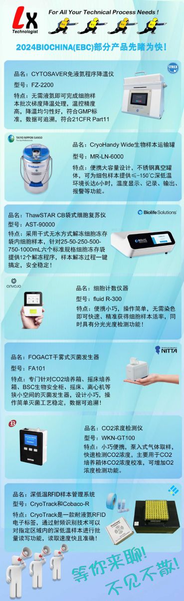 又是一年相聚時!朗喜工業與您相約BIOCHINA2024(EBC)易貿生物產業大會! 本界EBC將于2024年3月14-16日在蘇州國際博覽中心隆重開幕,展覽涵蓋原料、試劑、耗材、儀器設備等專業品類,大會包括抗體藥物、細胞藥物、基因藥物等創新企業、科研等眾多機構,業內大咖齊聚蘇州! 屆時,朗喜工業將攜眾多新品和解決方案參與此次盛會,期待您的蒞臨交流! ● 朗喜展位: