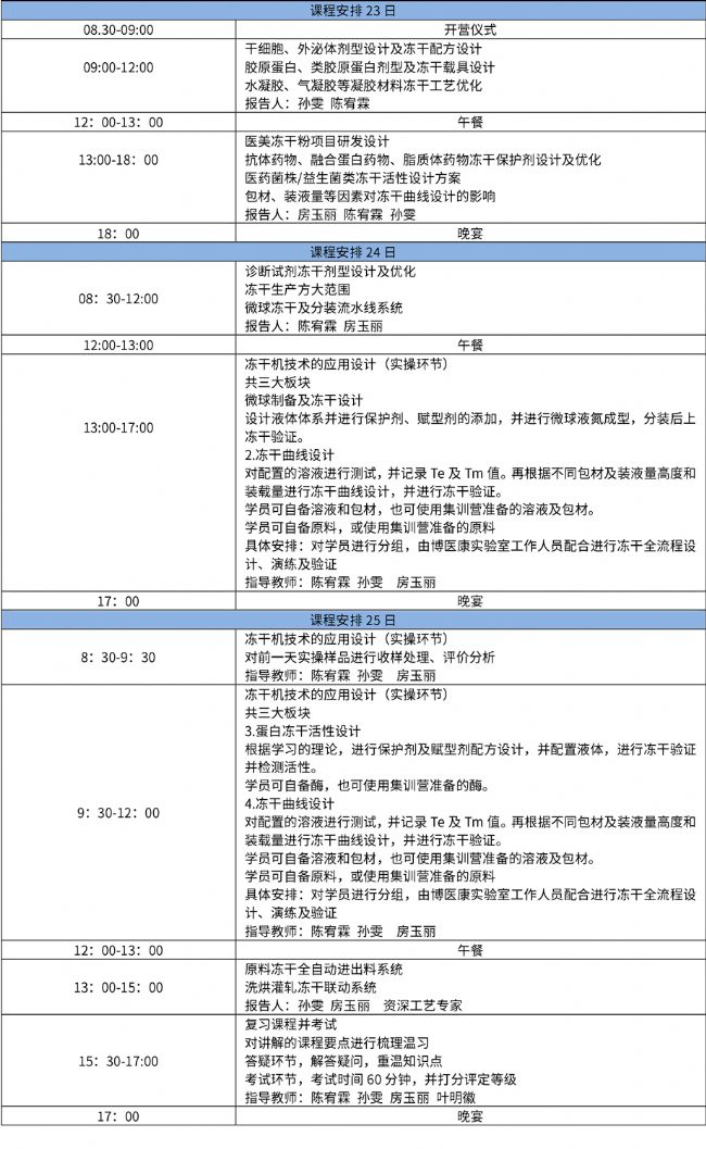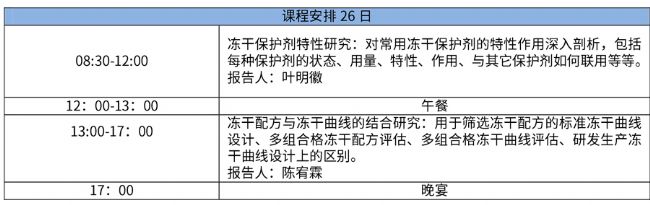 時間:23、24、25日為凍干技術進階培訓班,含凍干樣品實操課程;26日為專家精品班。