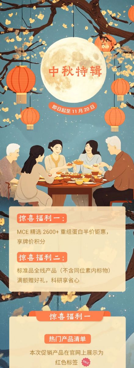 MCE中秋福利:重組蛋白半價鉅惠,標準品滿額贈禮