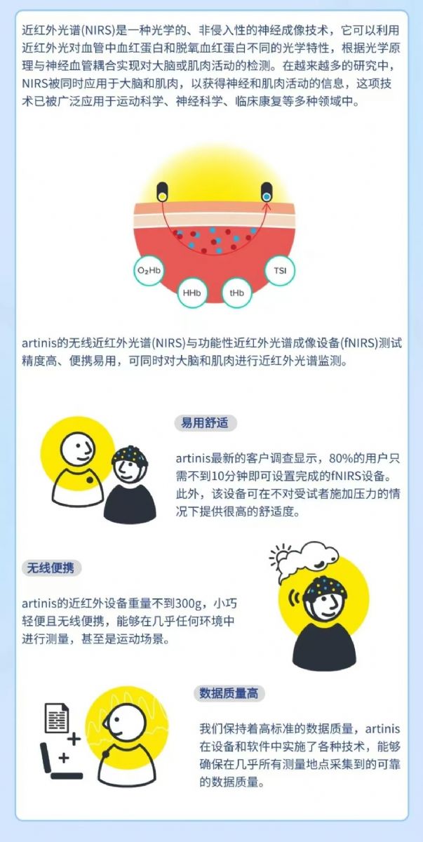 artinis的無線近紅外光譜(NIRS)與功能性近紅外光譜成像設備(fNIRS)測試精度高、便攜易用,可同時對大腦和肌肉進行近紅外光譜監測。