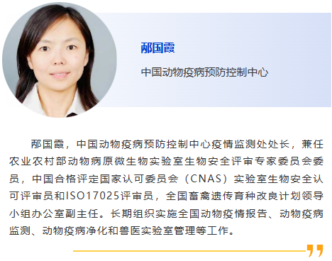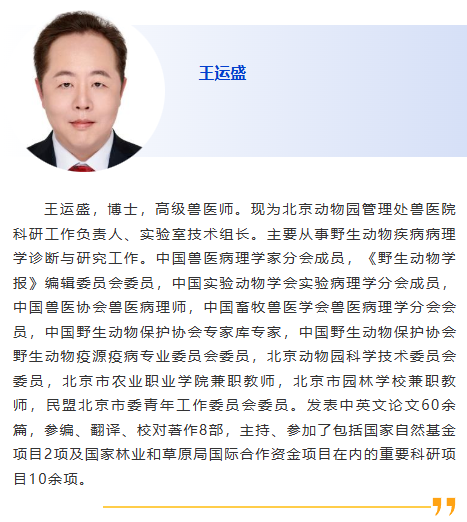 | 會(huì)前研討會(huì)9-跨境動(dòng)物疫病 主持人:楊振,樊曉旭 1:30pm – 我國動(dòng)物疫病監(jiān)測預(yù)警制度介紹,邴國霞,中國動(dòng)物疫病預(yù)防控制中心 2:00pm – 人獸共患結(jié)核病流行現(xiàn)狀與應(yīng)對(duì)措施,樊曉旭,中國動(dòng)物衛(wèi)生與流行病學(xué)中心 2:30pm – 贊助商報(bào)告 3:00pm – 休息 3:30pm – 跨境野生動(dòng)物疫病病理學(xué)診斷,王運(yùn)盛,北京動(dòng)物園 4:00pm – 基于數(shù)據(jù)挖掘的牛羊布病真實(shí)年感染率的貝葉斯推斷,李樹博,遼寧省動(dòng)物疫病預(yù)防控制中心 4:30pm – 中國豬群中PRRSV-1的鑒別檢測與流行演化,陳南華,揚(yáng)州大學(xué) |
