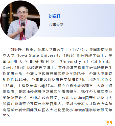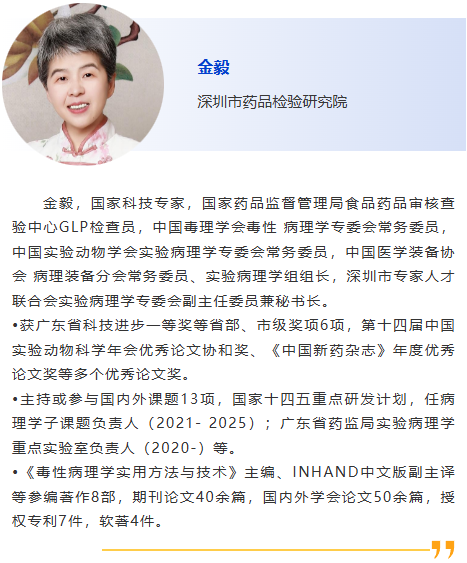 | 分會(huì)8-獸醫(yī)病理 主持人:周向梅、何希君 8:30am - 實(shí)驗(yàn)病理學(xué)公益平臺(tái):比較病理學(xué)病例總結(jié)、規(guī)劃及展望, 劉振軒,臺(tái)灣大學(xué)獸醫(yī)學(xué)院 9:00am – 流行豬病臨床病例綜合診斷,劉思當(dāng),山東農(nóng)業(yè)大學(xué) 9:20am – 推動(dòng)鴿藥創(chuàng)制與應(yīng)用的思考,劉月煥,北京市農(nóng)林科學(xué)院畜牧獸醫(yī)研究所 9:40am – 細(xì)粒棘球蚴對(duì)肝細(xì)胞損傷致病機(jī)制的研究,翟少華,新疆農(nóng)業(yè)大學(xué) 10:00am –實(shí)驗(yàn)病理學(xué)的歷史與未來展望:跨學(xué)科合作的橋梁與紐帶,遇秀玲,國家獸用藥品工程技術(shù)研究中心 10:00am - 10:30am 休息, 參觀展覽 毒性病理 主持人:白文霞,李曉瑜 10:30am – 國內(nèi)GLP發(fā)展現(xiàn)狀和問題,袁伯俊,海軍軍醫(yī)大學(xué) 10:50am – 大鼠博來霉素肺纖維化病理分析,蘇寧,東南大學(xué) 11:10am –眼內(nèi)給藥技術(shù)的探索與應(yīng)用,王俐梅,廣州灣區(qū)生物醫(yī)藥研究院 11:30am – 大鼠灌胃引起的反流及其在非臨床研究中的鑒別,胡建廷, 山東省藥學(xué)科學(xué)院新藥評(píng)價(jià)中心 11:50am – 藥物非臨床安全性評(píng)價(jià)中肺臟病變案例分享,楊沁,北京協(xié)和建昊醫(yī)藥技術(shù)開發(fā)有限責(zé)任公司 12:10am - 老年動(dòng)物胰島損傷模型病理學(xué)觀察與分析,宋志琦,中國醫(yī)學(xué)科學(xué)院醫(yī)學(xué)實(shí)驗(yàn)動(dòng)物研究所 |