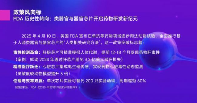 2025年4月10日,美國FDA宣布在單抗等藥物領域逐步淘汰動物試驗,全面推行基于人源類器官與器官芯片的“人類相關研究方法”。這一政策突破標志著: