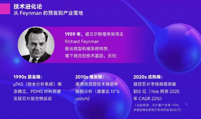 1959年,諾貝爾物理學獎得主Richard Feynman提出微型機械系統構想,埋下微流控技術基因。歷經: