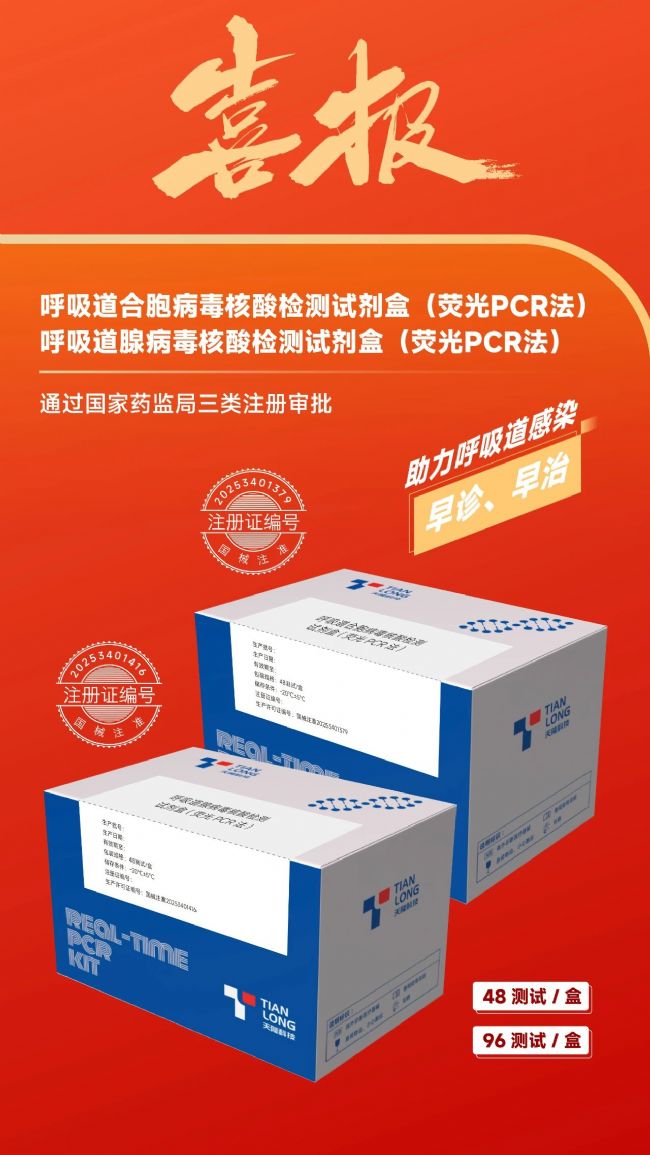 近日,天隆科技自主研發的呼吸道合胞病毒&腺病毒核酸檢測試劑通過國家藥監局三類醫療器械注冊審批,天隆智造有證家族再添兩位新成員——專精于合胞病毒及腺病毒追蹤的“偵探”,正式加入天隆科技守護呼吸道健康的精銳隊伍!