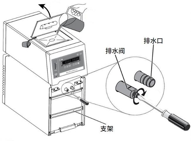 > 安全排液口:獨立排液閥設計,可通過浴槽前部的排液口安全排液。漏斗加液及排液口設計可輕松實現安全的更換導熱介質