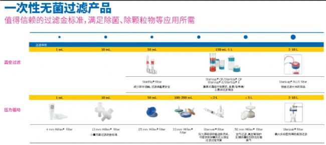 Millipore® Stericup/Steritop® 新一代真空無菌過濾器,專為培養基、緩沖液等關鍵溶液過濾設計,操作過程簡單,過濾效率高。Stericup/Steritop® E系列同時還兼顧綠色環保,再次定義了無菌過濾的新標準。