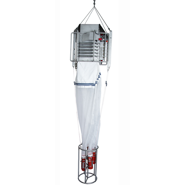 2023年4月,研究團隊結合衛星遙感數據,在南海北部(18°–20°N,111°–116°E)劃定1個氣旋渦旋(CE)及2個反氣旋渦旋(AE)區域,并基于此布設20個采樣站點(圖1)。在各采樣站點采用Midi型多聯網(MultiNet,圖2)垂直分層拖網,采集0–25、25–50、50–100、100–200、200–300 m等5個離散水層的浮游動物樣品。