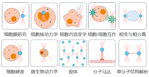光鑷(Optical Tweezers)是一種利用激光的動量傳遞來捕獲和操控微小粒子(納米至微米尺度)的技術,在物理、化學和生物領域有廣泛應用,尤其在單分子生物學研究中至關重要。在2018年,阿瑟·阿什金因“光學鑷子的發明及其在生物系統中的應用”獲諾貝爾物理學獎。