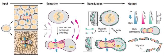 • The nucleus measures shape changes for cellular proprioception to control dynamic cell behaviour. SCIENCE (2020) DOI: 10.1126/science.aba2644