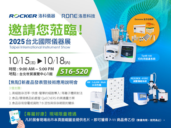 展期間,我們將舉辦多場精彩的技術應用分享,涵蓋細胞導入、食品與環境檢測、保存技術等重要議題,協助您掌握最前沿的實驗方案與檢測技術!