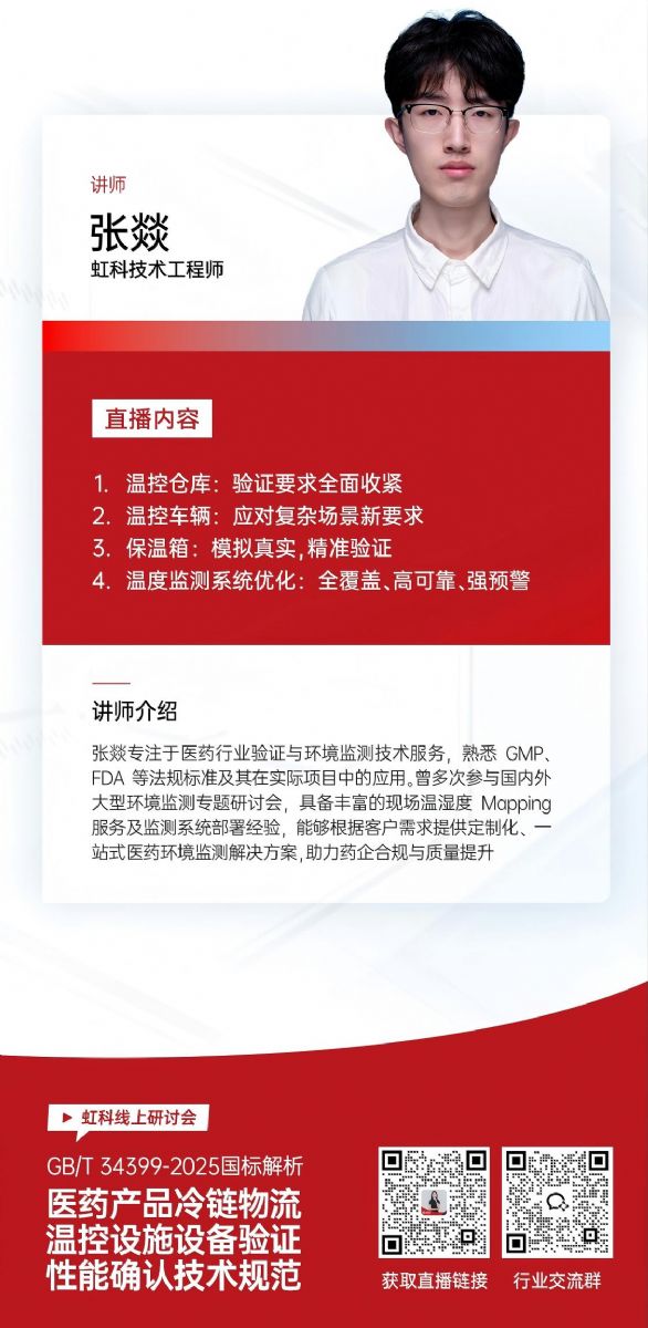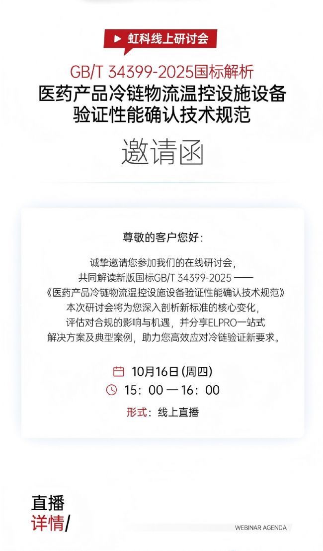 本次直播將帶您系統解讀GB/T 34399-2025核心條款,結合典型驗證案例與系統優化思路,助力藥企構建高標準、可追溯的冷鏈體系。